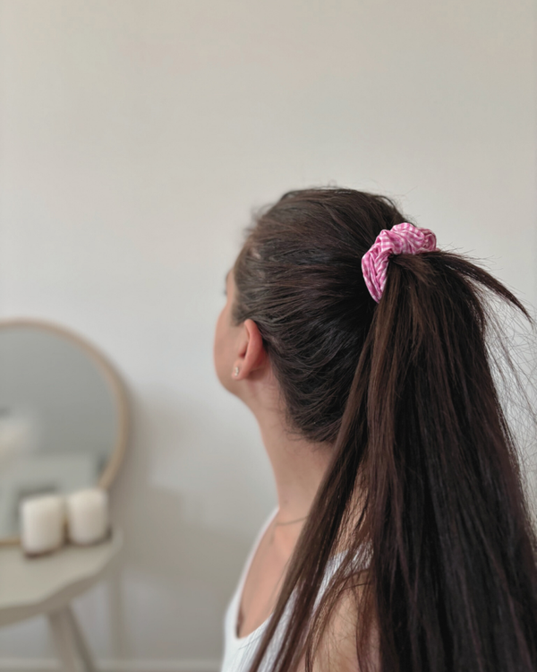 Ce chouchou aux motifs classiques et intemporels apporte une note douce et féminine à vos cheveux, tout en offrant un maintien impeccable grâce à son élastique large et confortable. Parfait pour un look casual ou une tenue plus habillée, il s’adapte à toutes les occasions.